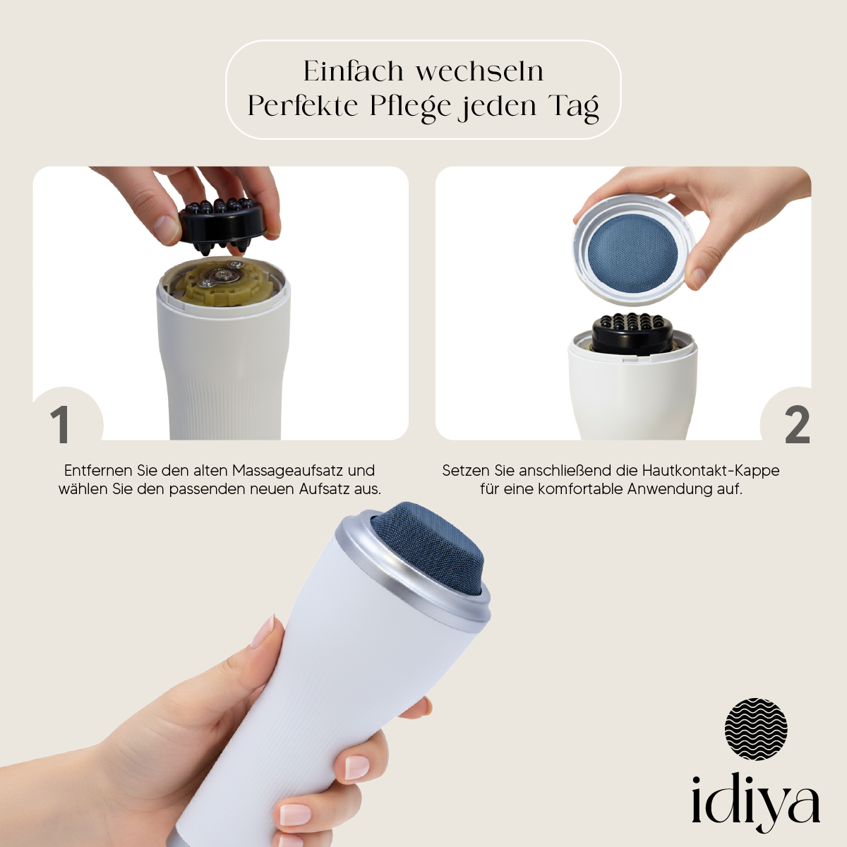 • 6 austauschbare Massageköpfe für unterschiedliche Körperbereiche